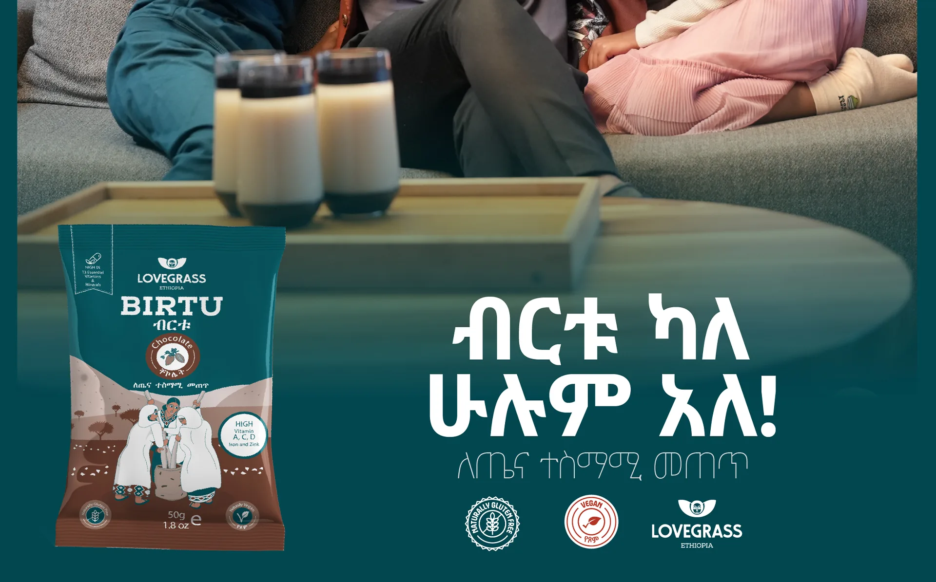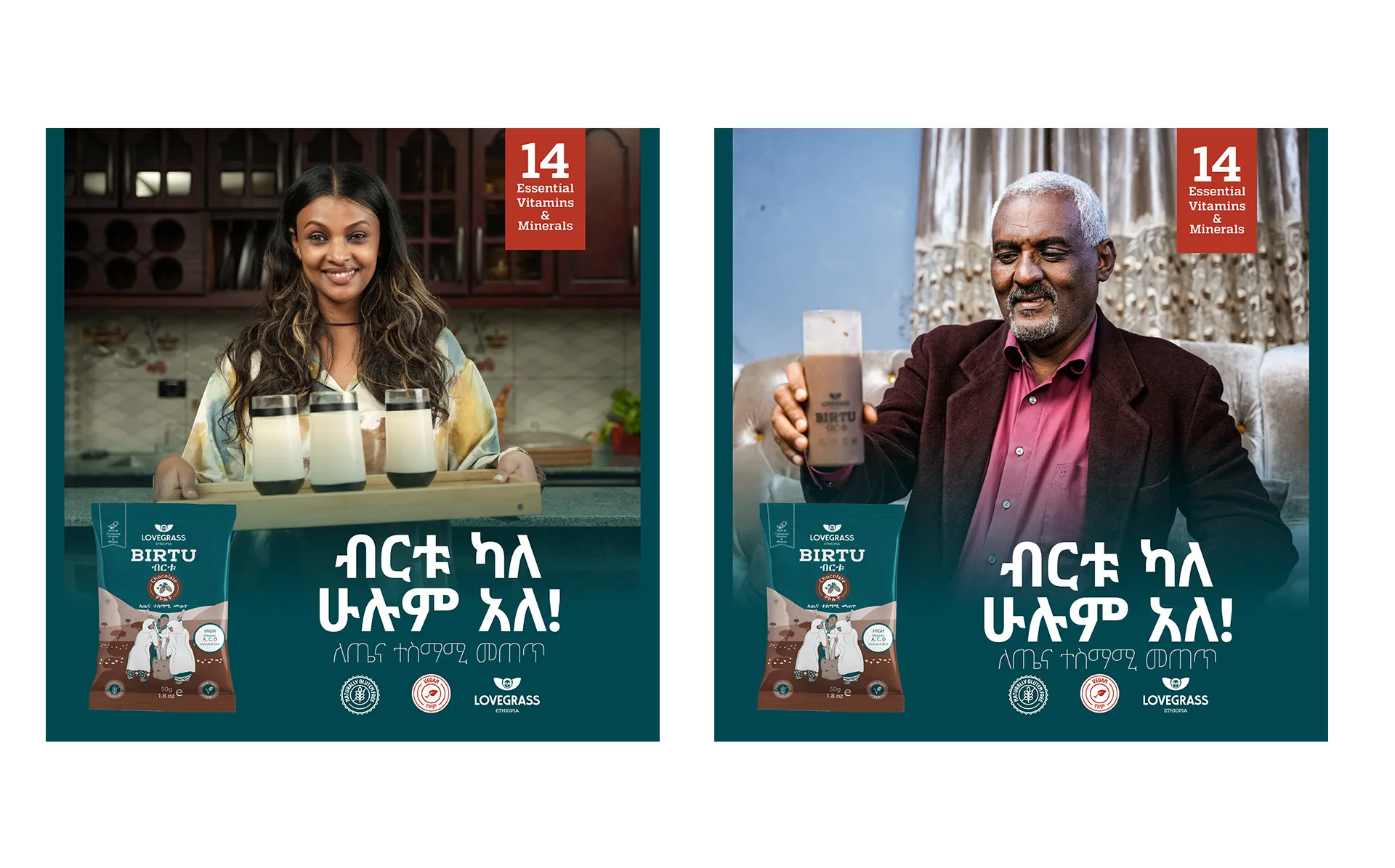 We successfully developed a three-month 360-degree launch campaign for Lovegrass Ethiopia’s Birtu meal replacement drink. This creative initiative helped the audience to better understand the product category and encouraged trials. This achievement not only demonstrates our commitment to excellence but also highlights the dynamic potential of strategic advertising in the fast-moving consumer goods (FMCG) sector.